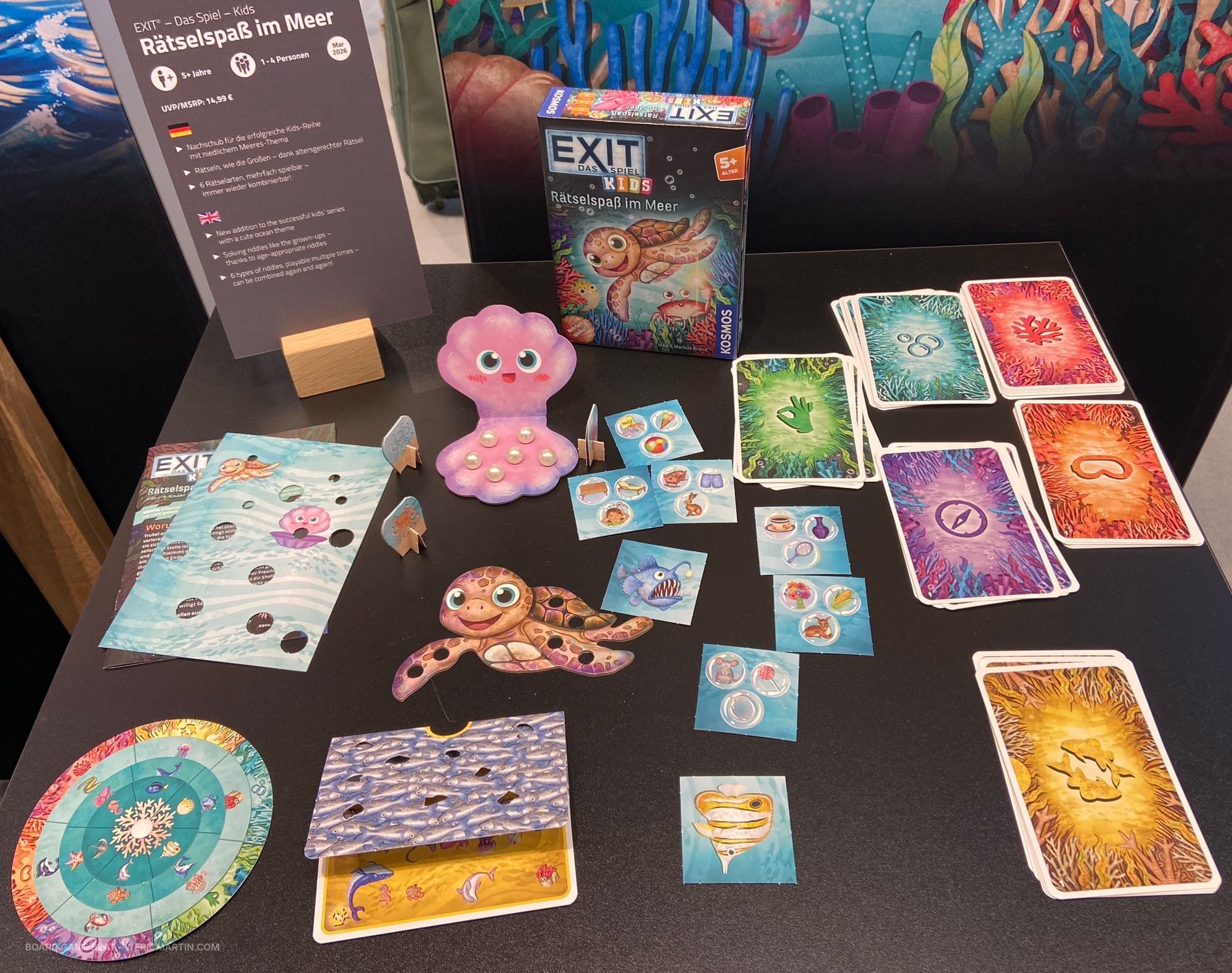 The newest such title is EXIT: Das Spiel – Kids: Rätselspaß im Meer (Puzzle Fun in the Sea), which is due out in Germany on March 5, 2026. The story: "Shelly the mussel has lost her sparkling pearls, so Sam the turtle sets off with her to find them. At the far end of the reef, curious sea creatures await who will hand over the pearls only in exchange for solving tricky riddles."