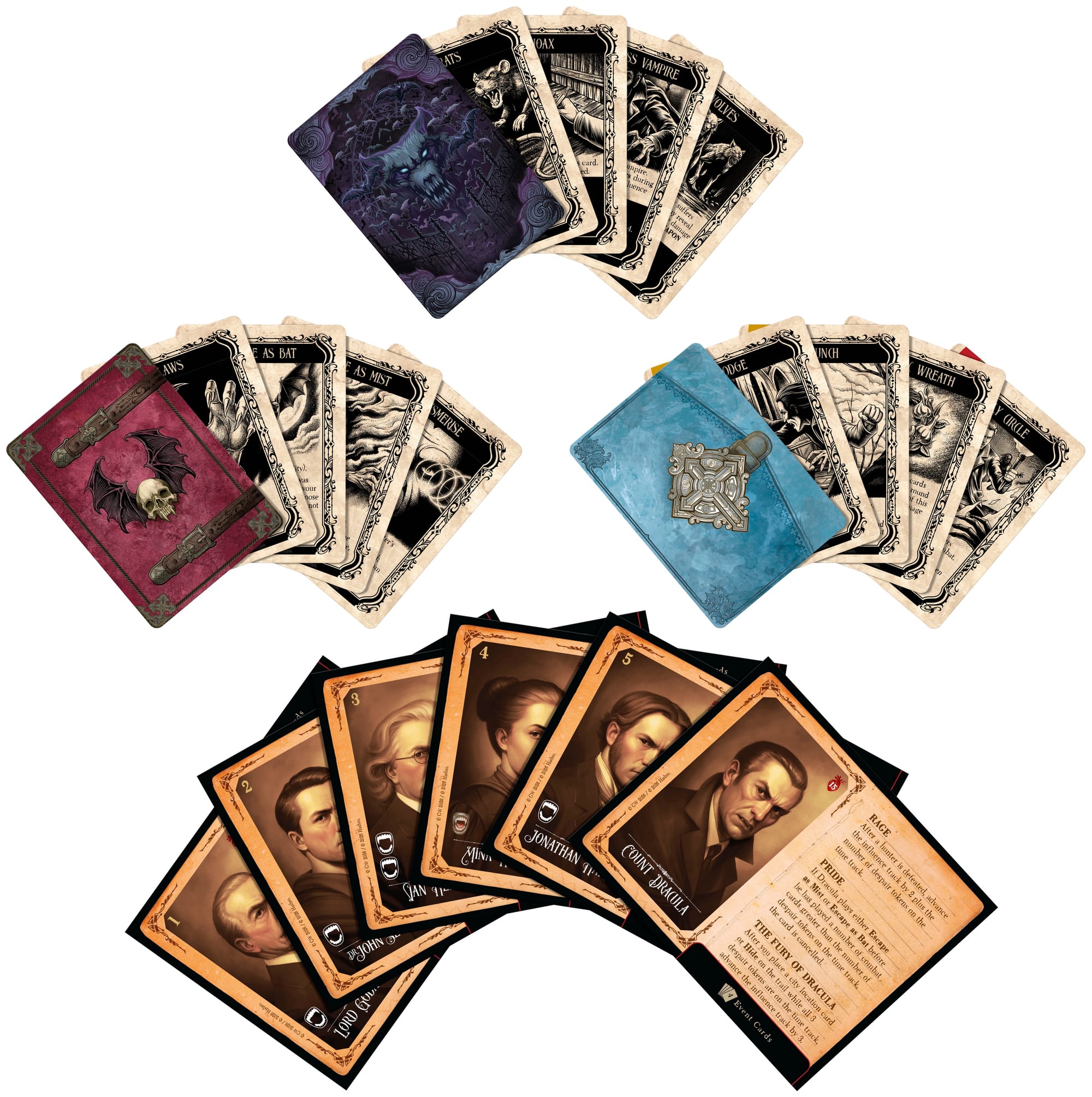 Dracula can be damaged as well — and if he takes 15 damage, the hunters win — but he can also flee from combat by resolving the right cards in the right circumstances, with combat automatically ending after six bouts.