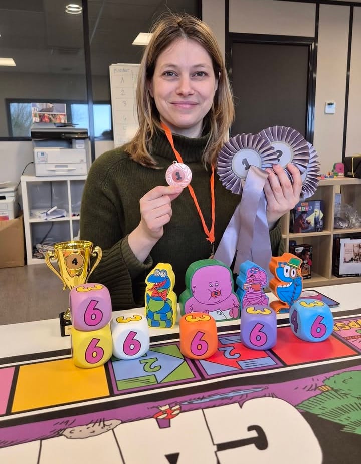 Actress Florence Coste, perhaps best known from her time on the television series "Ici tout commence" ("Here It All Begins"), visited the IELLO office and got to roll giant dice in the most magicalest version of this Richard Garfield and Takashi Ishida design.