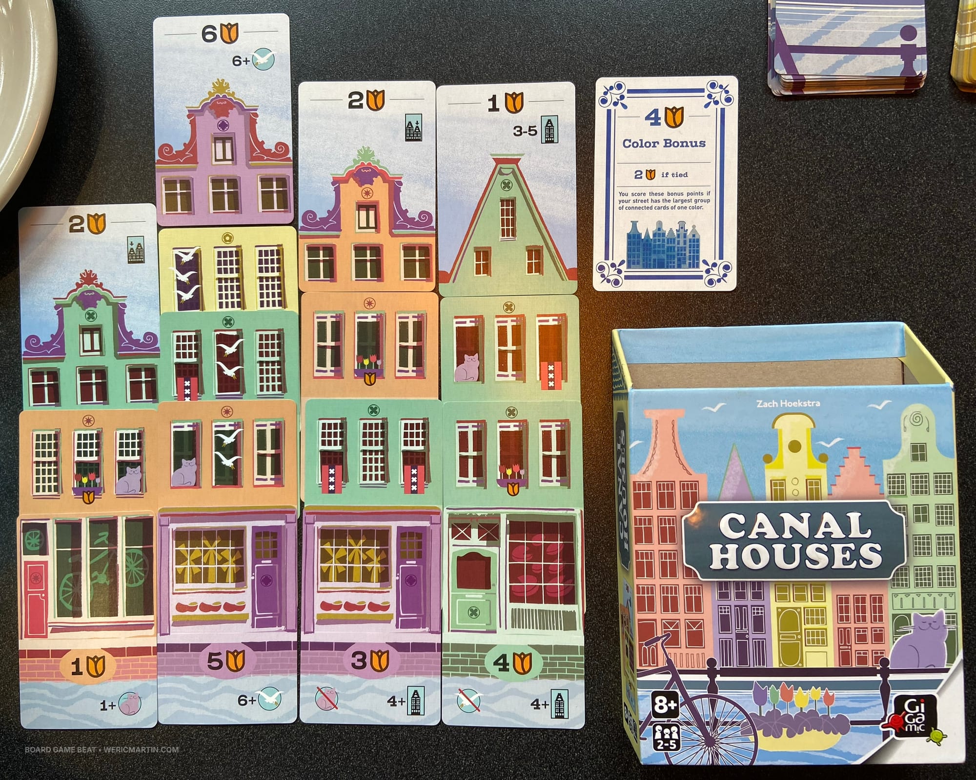 To close, we'll look at Zach Hoekstra's Canal Houses, one of the few games I played at GAMA Expo 2026, a game that I actually played three times thanks to lunch partners who were willing to try and try again.
