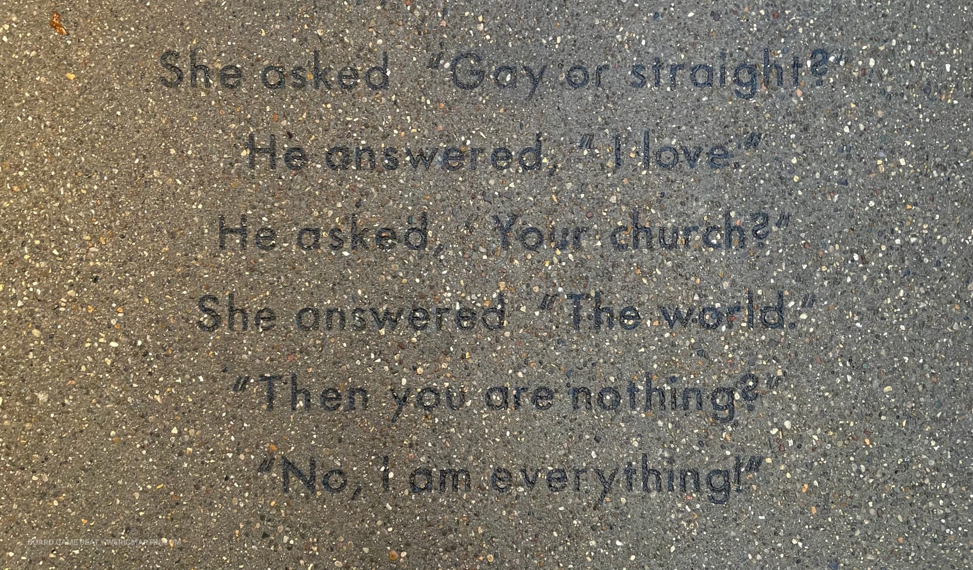 To continue my practice of including random photos during convention coverage, here's a poem embedded in the sidewalk near Sicilian Pizza & Pasta, which has a gluten-free pizza option on its menu that I cannot recommend as I don't think they take enough precautions handling GF dishes. (Translation: I did not have a pleasant evening after my meal.)