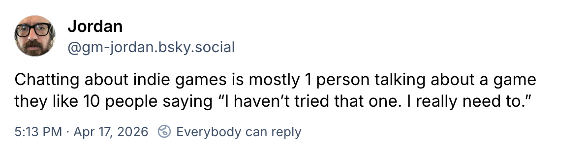 ▪️ I saw the above on Bluesky, and while the individual was talking about video games, it's also applicable to tabletop games (and books and movies and...).
