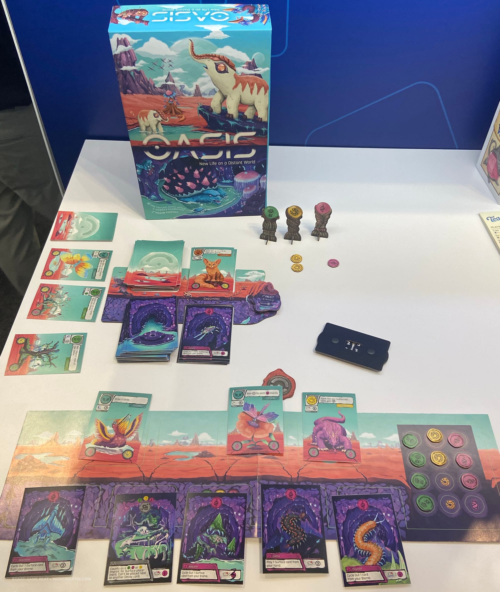 Oasis: New Life on A Distant World is a game for 1-5 players by Leo Taylor, Duvey Rudow, and George Feledichuk in which you're on a foreign world that's been devastated by climatic happenings, and you are establishing new creatures both above and below the crust of this world.