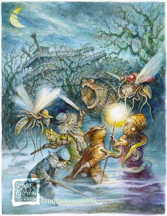 And with Cats in boxes on the way to backers, RAYBOX has revealed its next release: The Cats of New Orleans, with this also being a miniatures-based solitaire/co-operative game that features a coil-bound scenario book, with the outcome of each scenario affecting what comes next. Hmm, déjà vu! You're now fighting mosquitos and snakes, in addition to rats, so that's different.